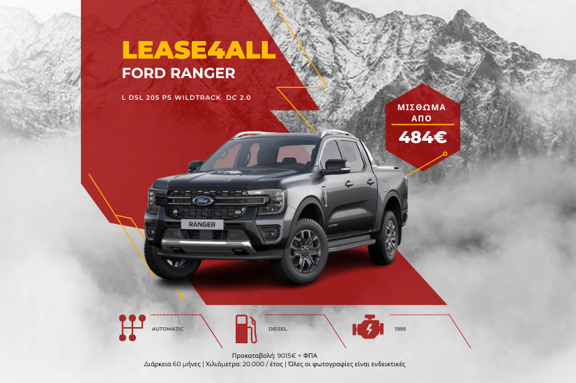 Απελευθερώστε τη δύναμη της περιπέτειας με το Ford Ranger Wildtrack. Αυτό το στιβαρό και ταυτόχρονα εκλεπτυσμένο pick up ενσωματώνει την ευελιξία και τις ικανότητες, προσφέροντας απαράμιλλη απόδοση τόσο εντός όσο και εκτός της πεπατημένης. Με τον στιβαρό κινητήρα ντίζελ και τα προηγμένα χαρακτηριστικά του, το Ranger Wildtrack εξασφαλίζει μια συναρπαστική οδηγική εμπειρία, παρέχοντας παράλληλα την άνεση και την ευκολία που χρειάζεστε σε κάθε ταξίδι. Ανακαλύψτε τον απόλυτο σύντροφο για εξερεύνηση και κατάκτηση κάθε εδάφους με αυτοπεποίθηση.