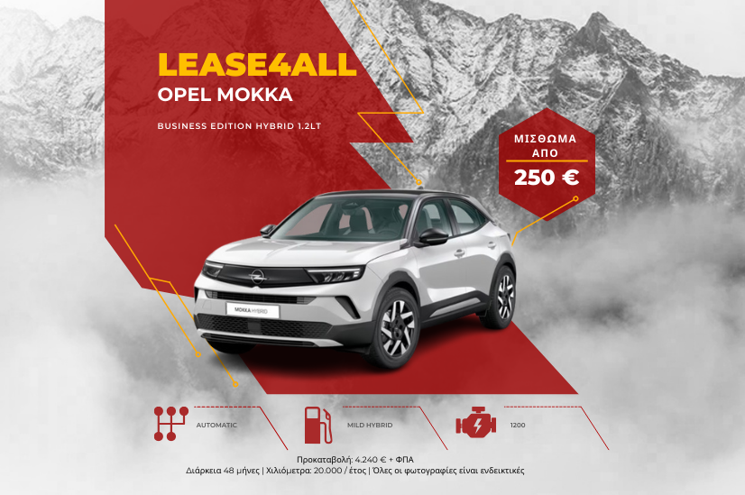 Το Opel Mokka Business Edition Hybrid 1.2L είναι ένα σύγχρονο SUV που συνδυάζει κομψή σχεδίαση, υβριδική αποδοτικότητα και προηγμένη τεχνολογία. Ο υβριδικός κινητήρας 1.2L προσφέρει ιδανική ισορροπία ισχύος και χαμηλής κατανάλωσης καυσίμου, ενώ η δυναμική οδική συμπεριφορά του εξασφαλίζει άνεση και ευελιξία τόσο στην πόλη όσο και στον αυτοκινητόδρομο. Το ευρύχωρο και τεχνολογικά προηγμένο εσωτερικό διαθέτει σύγχρονα συστήματα συνδεσιμότητας και ασφάλειας, καθιστώντας το Mokka μια εξαιρετική επιλογή για επαγγελματίες και ιδιώτες που θέλουν ένα μοντέρνο, αποδοτικό και στιλάτο SUV.