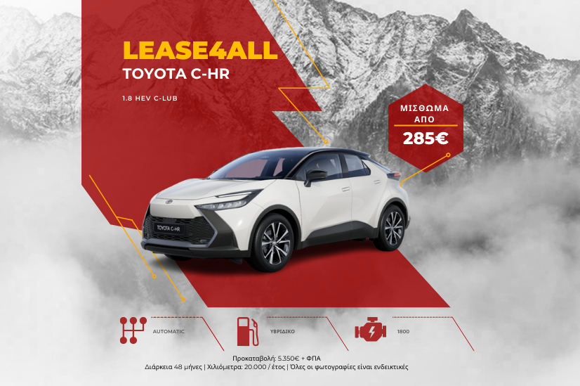 Το Toyota C-HR 1.8 HEV C-Lub συνδυάζει μοντέρνο coupe σχεδιασμό με υβριδική τεχνολογία, προσφέροντας εξαιρετική οικονομία καυσίμου και δυναμική οδήγηση. Με τον υβριδικό κινητήρα 1.8L, παρέχει ιδανική ισορροπία απόδοσης και χαμηλών ρύπων, ενώ το ευρύχωρο και τεχνολογικά προηγμένο εσωτερικό εξασφαλίζει άνεση και συνδεσιμότητα. Εξοπλισμένο με προηγμένα συστήματα ασφάλειας Toyota Safety Sense, το C-HR προσφέρει κορυφαία προστασία και σιγουριά σε κάθε διαδρομή. Μια επιλογή που συνδυάζει στυλ, καινοτομία και οικολογική συνείδηση.